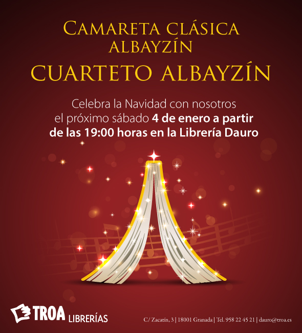 Sábado 4 enero, música en directo con Cuarteto Albayzín 19:00 Libreria Dauro, calle Zacatin, 3, Granada